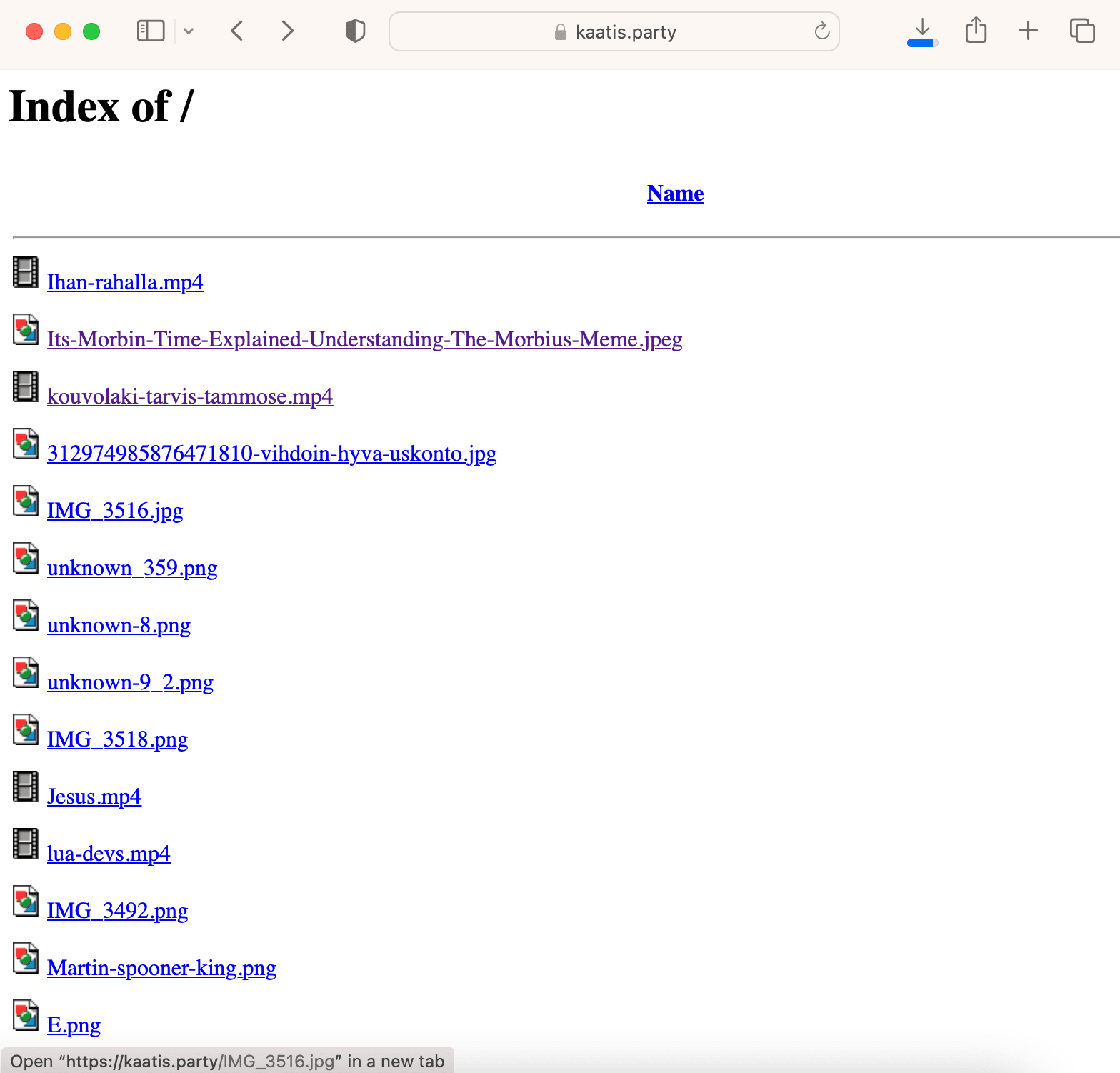 Meemit Discordista arkistoon Apache HTTP -palvelimen tiedostolistaukseen.