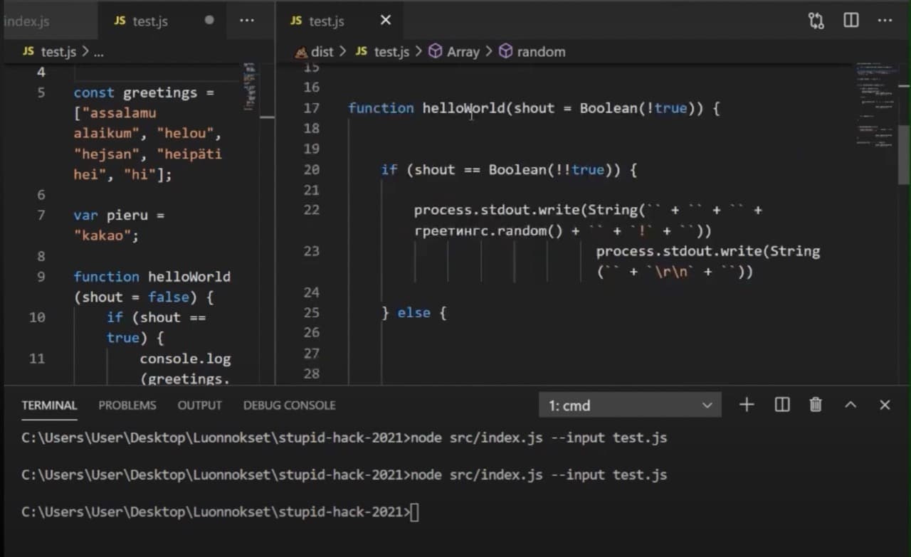 Stupid Hack 2021 -hackathonin Testausserverin tiimin kilpailutyö – shittify your code today!